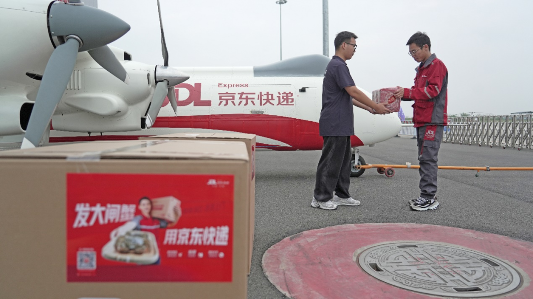 京东物流还开通多条空中航线,借助无人机等设备,江苏大闸蟹能在15分钟内飞抵上海,运输时间节省2.5小时。
