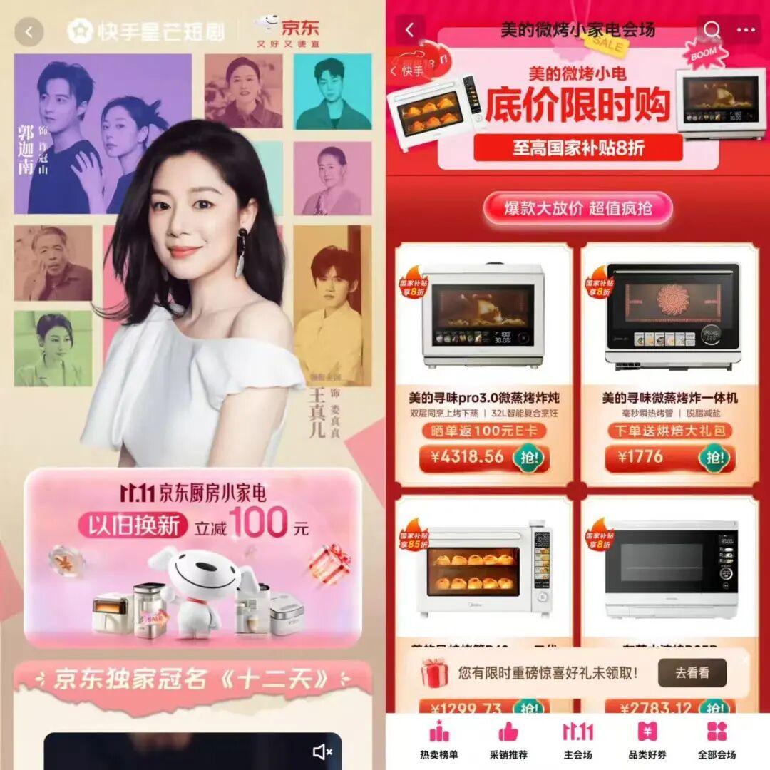 相比较淘宝天猫的花大力气在长视频领域上奋斗,京东则更爱“短”平快的效果, 无论是如上文所言“少爷与我”、“外星丛”都替其拍摄各个 TVC ,在社交媒体上传播,意图形成病毒式效应,还是联动快手,一连推出多部定制短剧,都能看出京东对于高效转化的强需求。