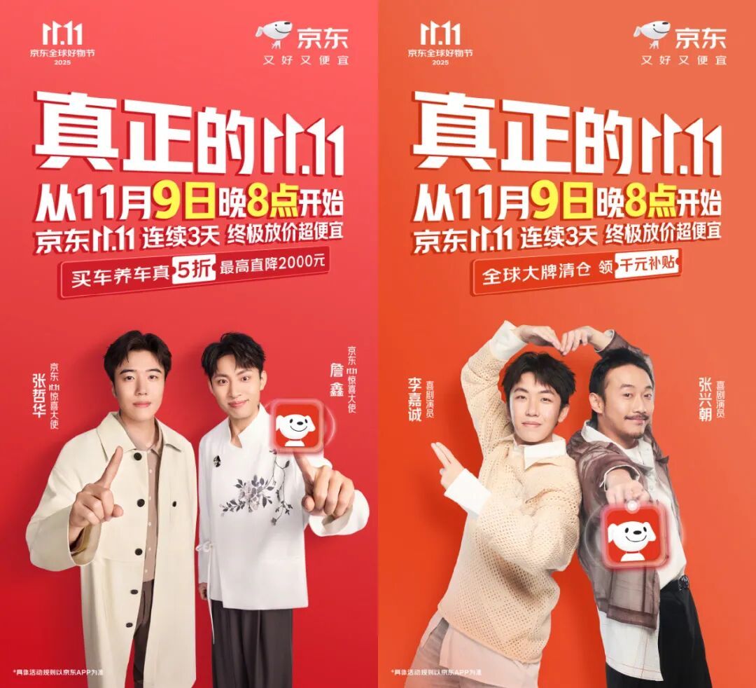 例如京东及各业务线在这个双十一设立了京东 11.11 上新惊喜日,配上新编版潮流代言人张艺兴的《闹天宫》;“苏超”决赛当天,邀请武艺等嘉宾直播互动的球迷惊喜日;以《疯狂动物城》领衔多个IP形象构成宣传片的吃喝玩乐惊喜日;此外还有风尚咖啡日、超级直播日等等,每个不同的节点,推出的福利活动都各有侧重、不尽相同,主打一个“节日”不咋停。