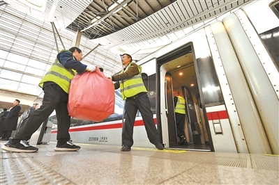 “双11”网购高峰期已至,昨天,北京青年报记者从中铁快运股份有限公司北京分公司获悉,“双11”期间,北京分公司在5列高铁列车上启用快件预留车厢,每天可多运送快件10吨到12吨。