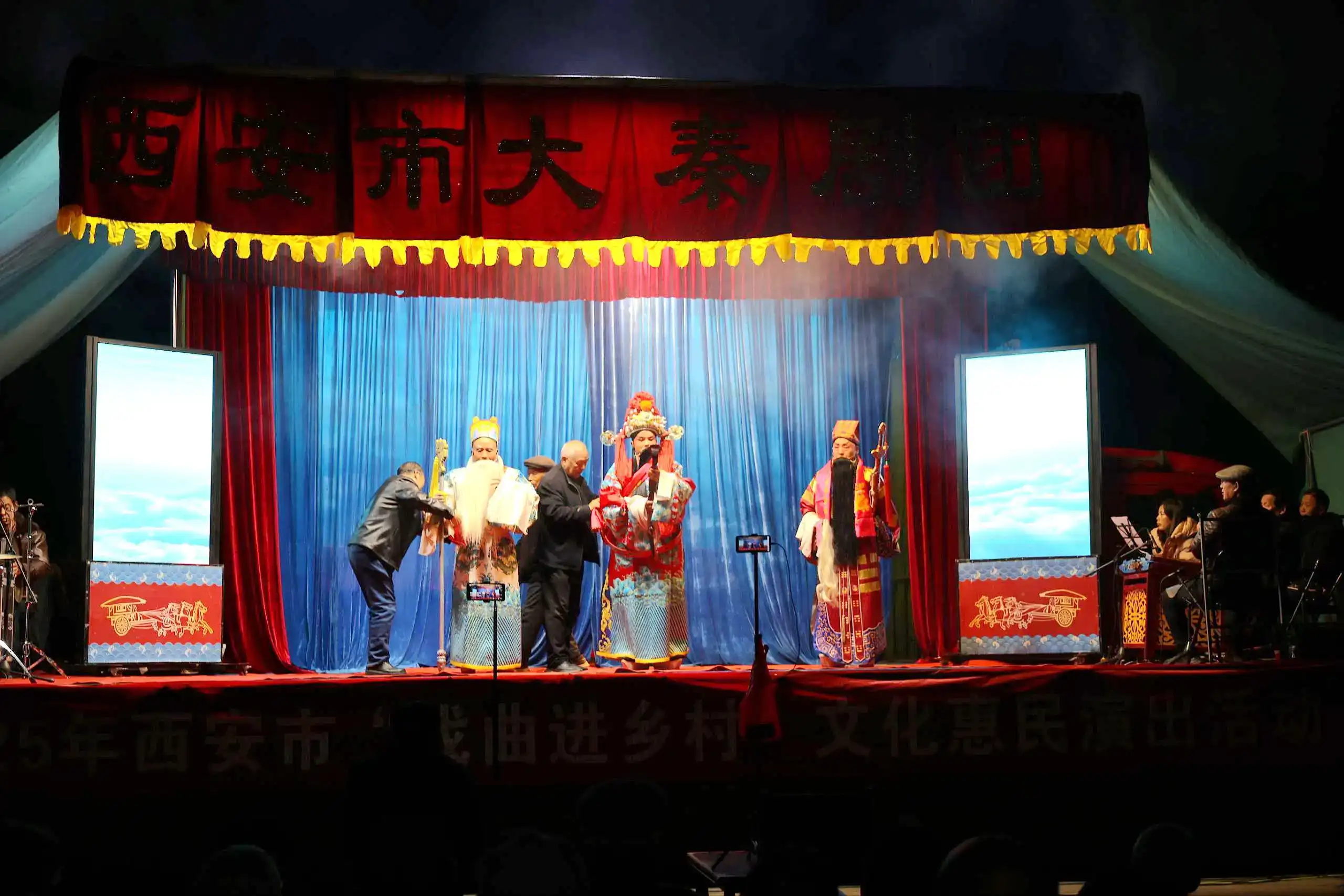 11月7日晚至11月11日下午,西安高新区“大戏看秦腔”惠民巡演活动再度启航,先后走进庞光街道庞新社区乌东新村、秦渡街道西花园村、草堂街道堰湖村、庞光街道庞新社区焦东村等多个点位,连续上演《双官诰》《大登殿》《黑虎坐台》《苏武牧羊》《斩秦英》《打砖》《辕门斩子》《香山寺还愿》《玉堂春》《出棠邑》等10场经典秦腔本戏和折子戏,以高水准的艺术呈现和深厚文化底蕴,让辖区群众在家门口畅享原汁原味的传统秦腔艺术盛宴,赢得基层群众热烈反响,现场掌声、喝彩声不绝于耳。