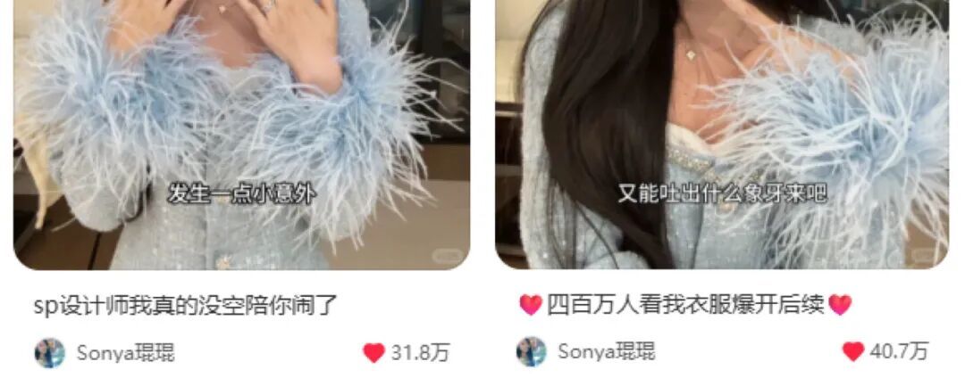 而这并非self-portrait第一次陷入争议。早在半年前,一位小红书博主吐槽品牌5000多元连衣裙“伸手就崩扣”的视频获得了400万次浏览量,31.8万点赞,直指其设计缺乏实用性。