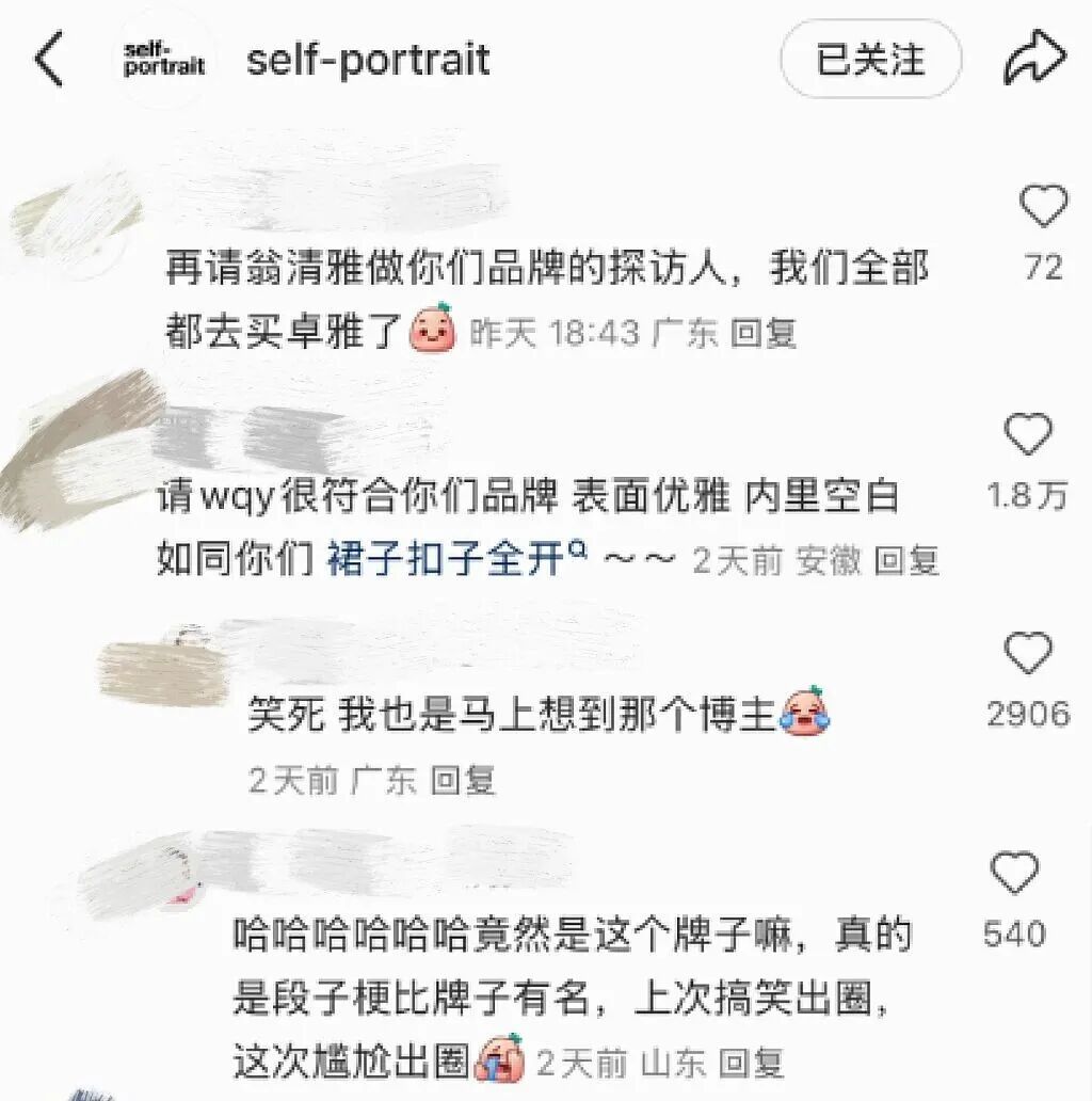在事件冲上热搜后,self-portrait中国运营方歌力思集团不得不公开回应,承认“这次事件让我们深刻反思,品牌在活动流程管理与执行细节上存在明显不足”。