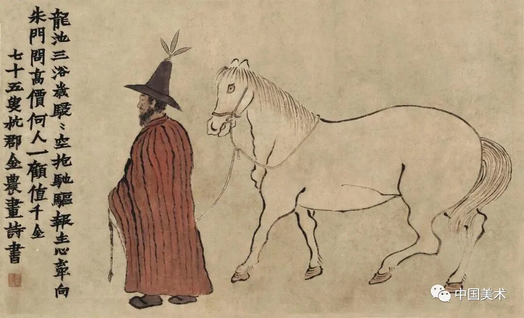 金农 牵马图 (局部) 纸本设色