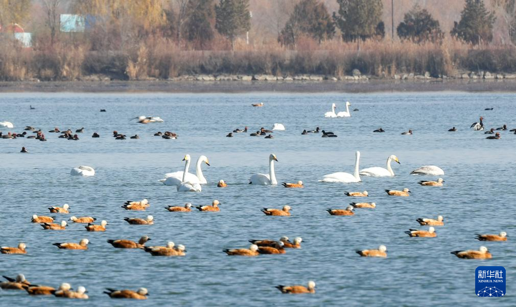 入冬以来,大批候鸟陆续飞抵位于甘肃省张掖市的张掖黑河湿地国家级自然保护区高台段休憩觅食。作为全球9条候鸟迁徙通道之一的中亚通道的重要中转站,每年约有18万至25万只水禽在张掖黑河湿地国家级自然保护区集结、停歇。