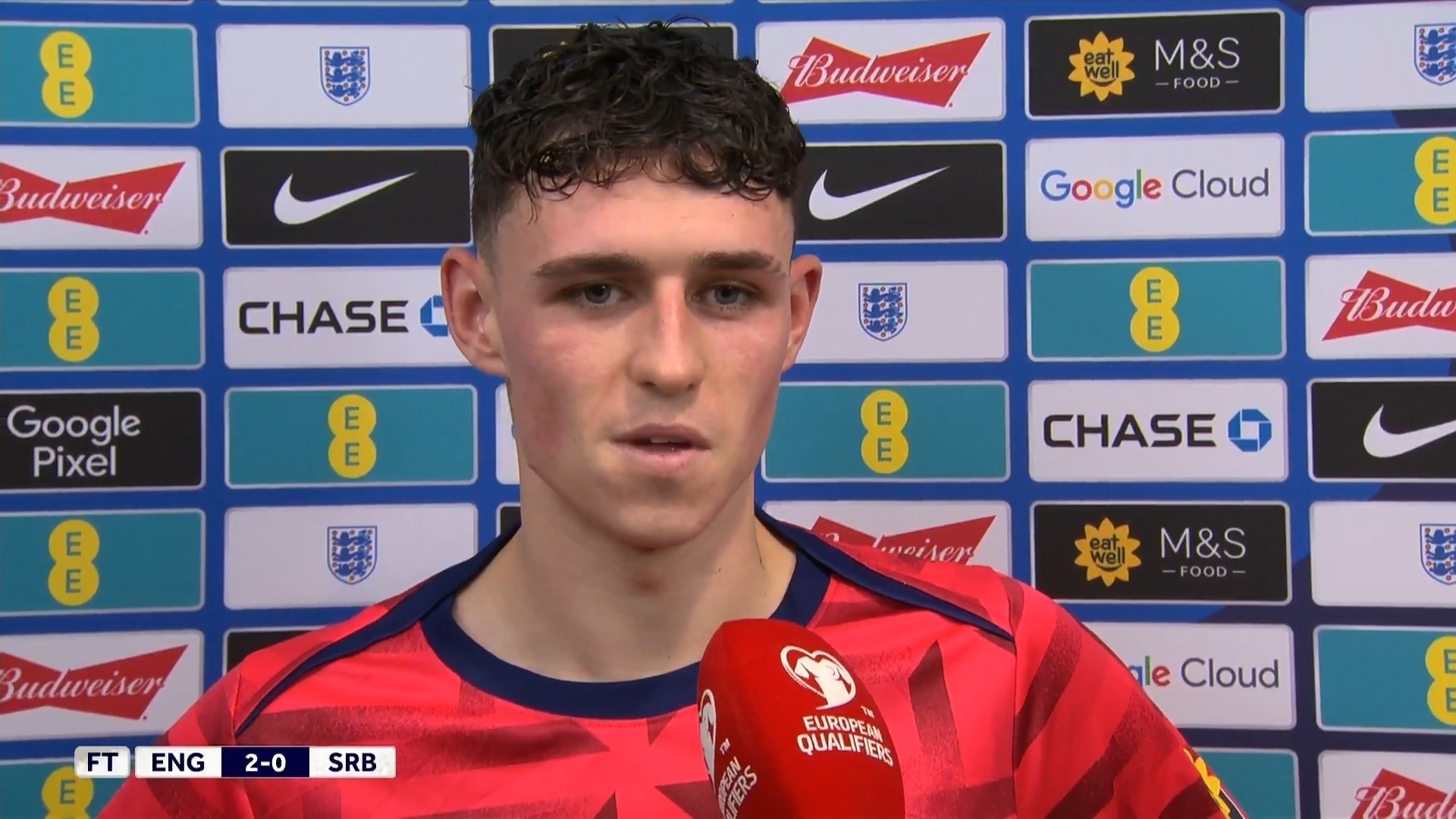 在欧洲区世界杯预选赛第9轮主场2-0击败塞尔维亚之后,英格兰前锋福登接受了来自英国独立电视台的采访。