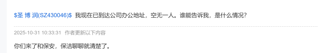与此同时,公司管理层正在上演“大逃亡”。2025年10月,公司财务总监、副总经理、董事等多人辞职。实际控制人、控股股东、董事长孟岗手中的股份大部分被质押,如全部行权,可能导致公司控制权变更。还有股吧网友说,自己去了圣博润的办公地址,空无一人。