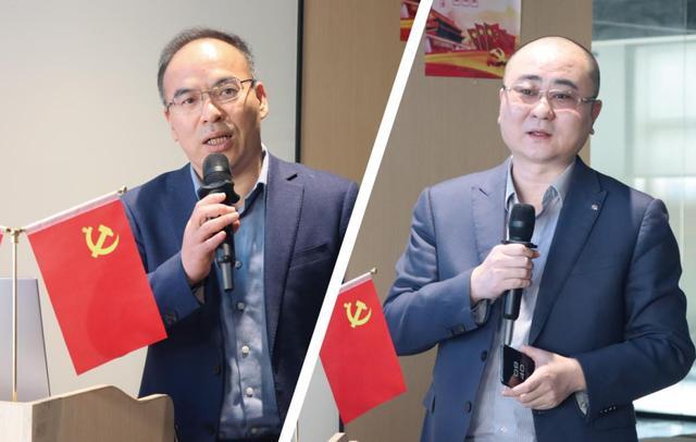 (▲领导代表上台发言李学军(左)国洪雷(右))