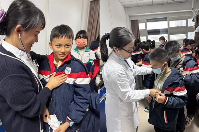 刚踏入宁康楼四楼的脾胃病科,古雅的中式装修就牢牢抓住了孩子们的目光。在医护人员的细致引导下,同学们沉浸式解锁中医“问诊技能”:伸出小手模仿三指搭脉,用听诊器捕捉心脏的健康节律。