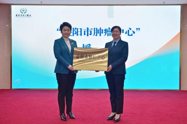 (▲益阳市卫生健康委党组书记、主任马慧为益阳市肿瘤中心授牌)