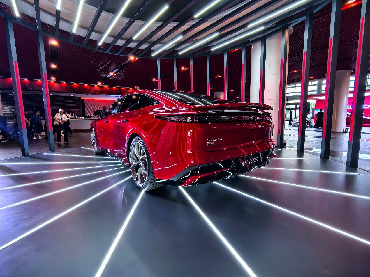 新款星纪元ES尾部设计同样好看,修长的贯穿式灯组提高了尾部的视觉宽度,下方采用了扩散器设计,此外,新车全系标配两档可调电动尾翼,可自动开启并根据速度自动升降,也可手动开启,十分拉风。