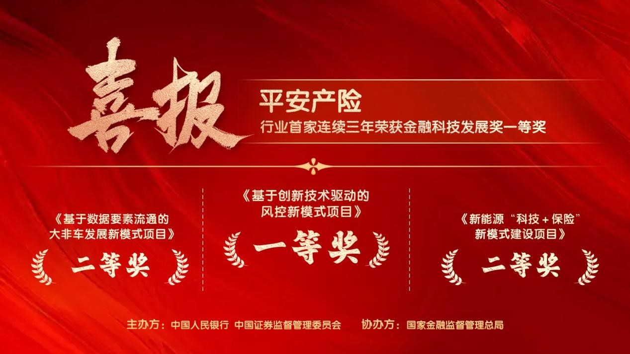 近日,中国人民银行正式公布“2024年度金融科技发展奖”获奖名单。中国平安财产保险股份有限公司(以下简称“平安产险”)携手平安科技共同打造的《基于创新技术驱动的风控新模式》在681个项目中脱颖而出,荣获“金融科技发展奖一等奖”。这是继2022年度、2023年度摘得一等奖后,平安产险再度斩获金融科技发展一等奖,成为行业首家连续三年荣获一等奖的保险公司。同时,平安产险联合平安科技和壹账通分别申报的《基于数据要素流通的大非车发展新模式》《新能源“科技+保险”新模式建设项目》荣获二等奖。