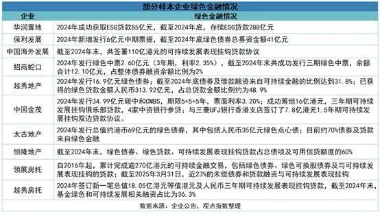 涉足商业地产的企业中,华润置地2024年成功获取ESG贷款85亿元,截至当年末存续ESG贷款288亿元。中国海外发展2024年共签署110亿港元的可持续发展表现挂钩贷款协议。越秀地产当年7月还成功发行16.90亿元离岸人民币点心债券,期限为3年,票面利率为4.10%;但均未明确募资用途是在商业地产项目建设或改造方面。