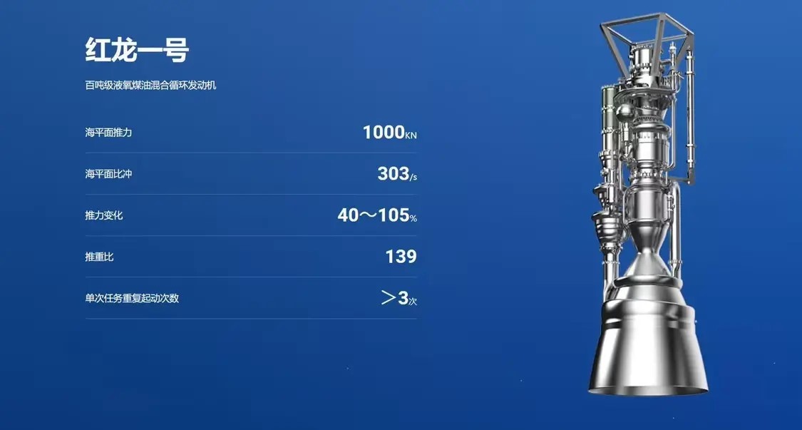 “红龙二号”是天回航天研制的首款液氧甲烷发动机,延续了天回“龙”系列发动机性能,采用天回航天原创发明的混合循环方式和一体化结构融合设计技术。