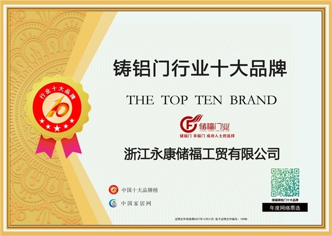 相信在未来,储福门业将以2025中国铸铝门十大品牌为契机,不断拓展市场版图,深化品牌影响力,继续领跑中国铸铝门行业发展,为“储蓄万家,福泽天下”的企业愿景注入更多活力,让2025中国铸铝门十大品牌的荣誉绽放更耀眼的光芒。