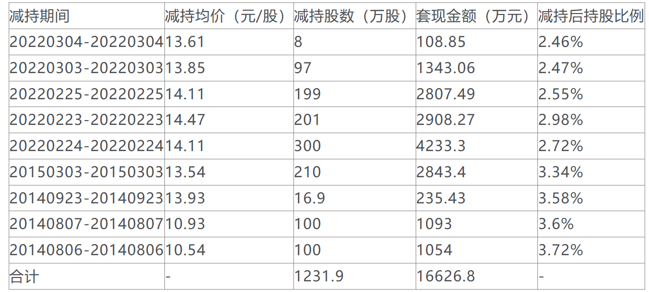 新浪财经的数据显示,刘长来最初持股3268.34万股,占总股本的3.84%。刘长来从2014年8月6日起,第一次减持骆驼股份股份,迄今为止,累计减持公司股票1231.9万股,累计套现约1.66亿元。