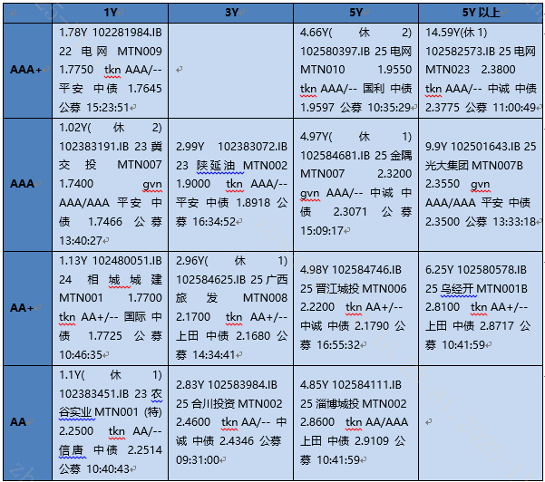 【2.1】25中交二航MTN005(科创债) 3+N 27.5e AAA/-- 【1.7-2.7】