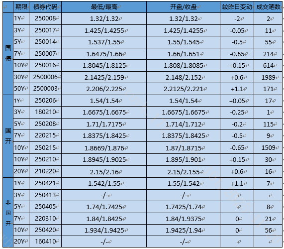 10Y 250220X19 加权利率 1.8961% 全场倍数 3.25倍 边际倍数 22.33倍