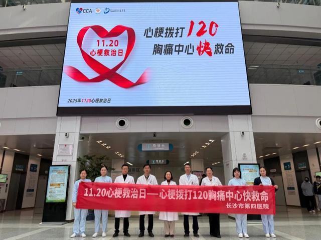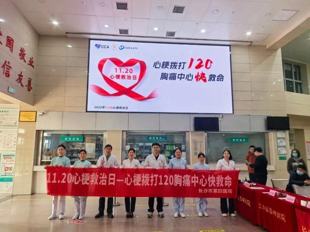 11月20日是“心梗救治日”,为提升公众对心梗的认知,强化“胸痛即拨120”的意识,长沙市第四医院胸痛中心在两个院区及医联体单位同步开展以“心梗拨打120,胸痛中心快救命”为主题的系列宣传活动。