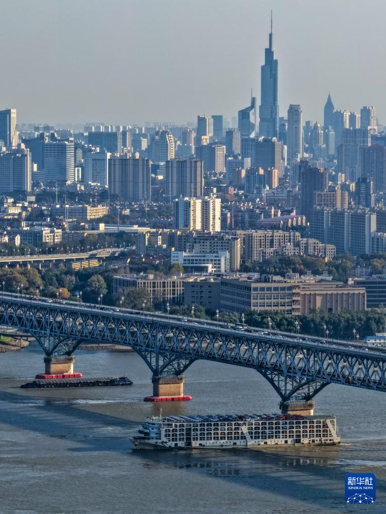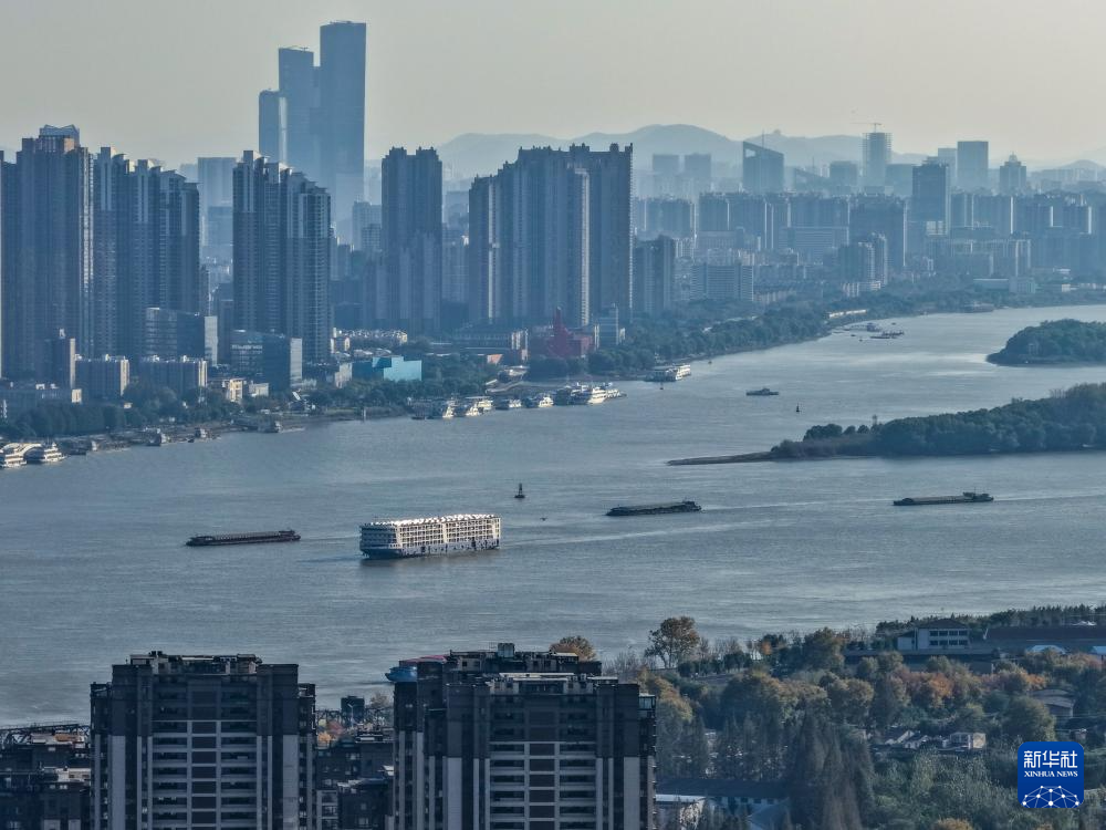 船只行驶在长江南京段(2025年11月18日摄,无人机照片)。