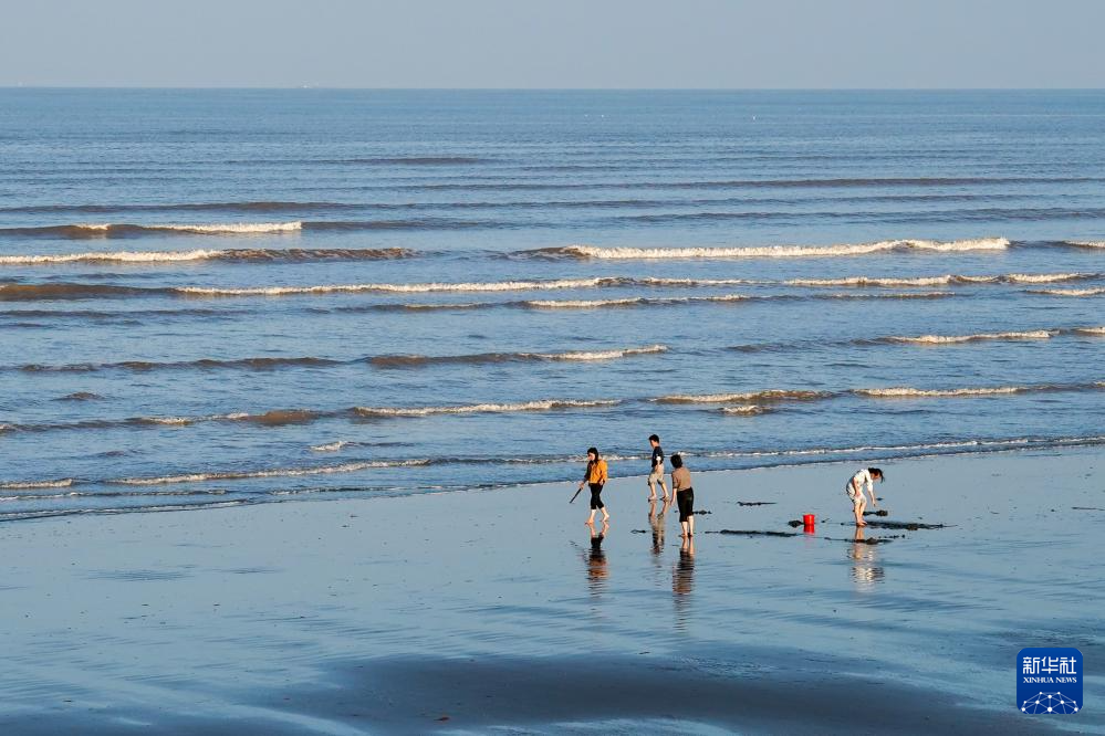 游客在江苏省启东市江海澜湾旅游度假区休闲游玩(2024年11月3日摄)。