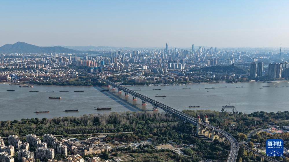 这是2025年11月18日拍摄的长江南京段和南京长江大桥(无人机照片)。