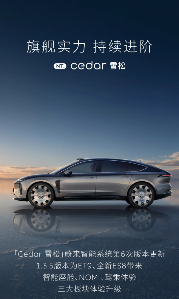 【CNMO科技消息】11月21日,蔚来官方宣布其智能系统“Cedar雪松”迎来第6次版本更新,版本号为1.3.5,将为ET9、全新ES8带来三大板块体验升级,分别是智能座舱、NOMI AI和驾乘体验。