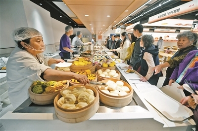 “不用开火也能吃到平价热乎饭,干净又方便!”11时40分,位于朝阳区工人文化宫M层的“匠心食堂”里座无虚席,不少老人携伴而来排队取餐,人群中还有不少年轻上班族的身影。今年9月1日,在朝阳区工人文化宫正式运营一个月之际,其内部职工食堂向社会敞开大门,为周边居民、职工及新就业群体提供便捷实惠的就餐选择。