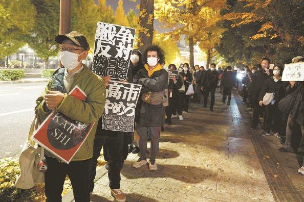 日本民众在首相官邸外抗议 新华社 发
