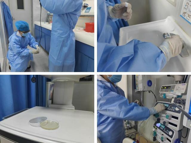 感控科专职人员对重症医学科工作人员手、病房空气、纤支镜、水龙头、微量注射泵等关键环境物体表面开展全覆盖监测采样,以明确感染源及感染途径。