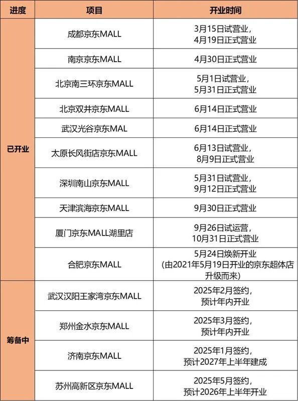 也就是说,在2025年开业的京东MALL数量有望达12家,而京东MALL在全国的已开业及筹备中门店已超30家。