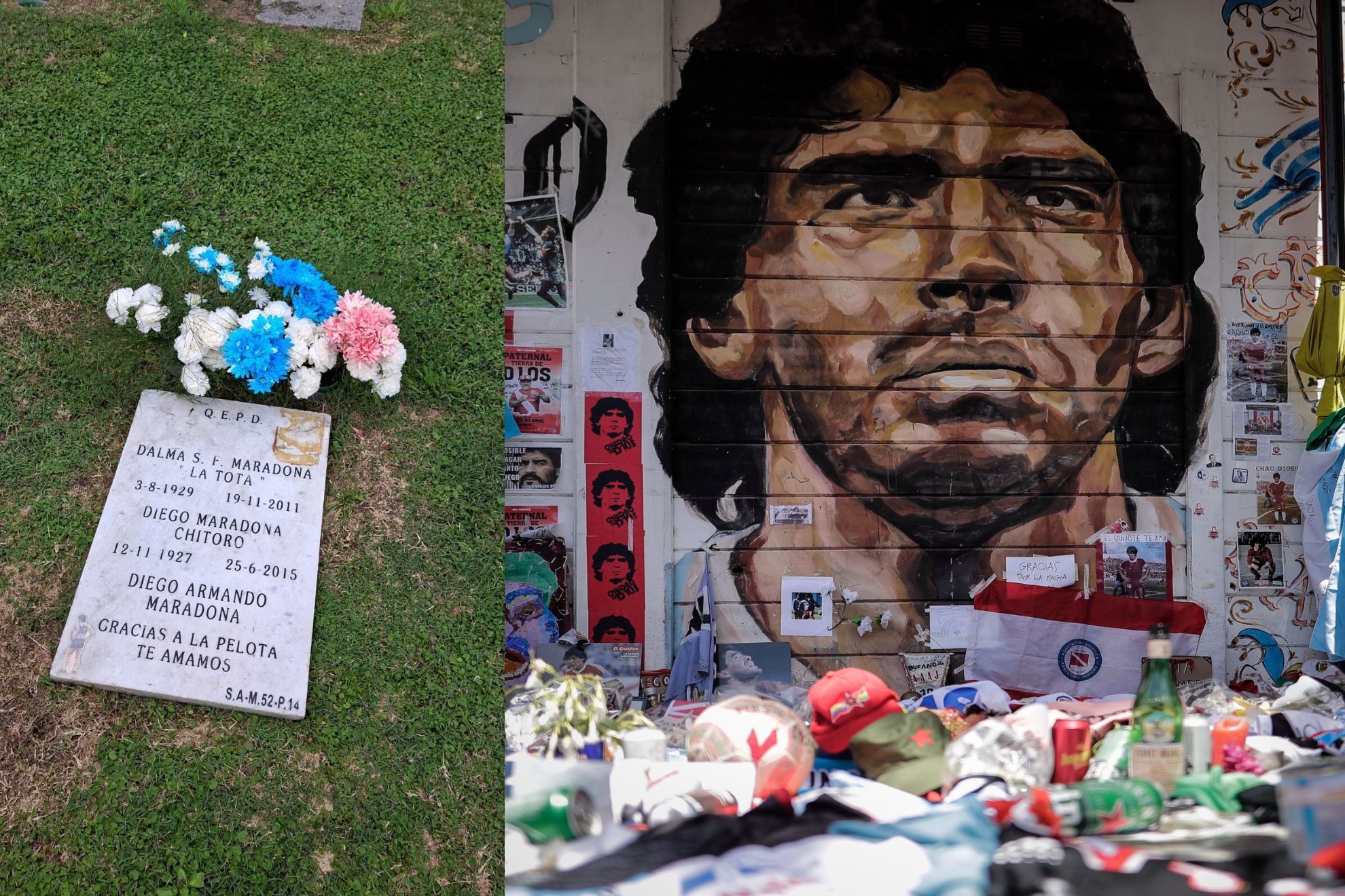 马拉多纳则安息在布宜诺斯艾利斯贝拉维斯塔花园私人墓地,与他的父母多娜-托塔和唐-迭戈长眠在一起。一块朴素的墓碑守护着这位阿根廷巨星的遗骸。墓碑需要不断安装和移除,因为一些无良之徒曾试图盗走它。他们或许会得逞,但没有人能从足球集体记忆中夺走“球王”。愿马拉多纳安息。