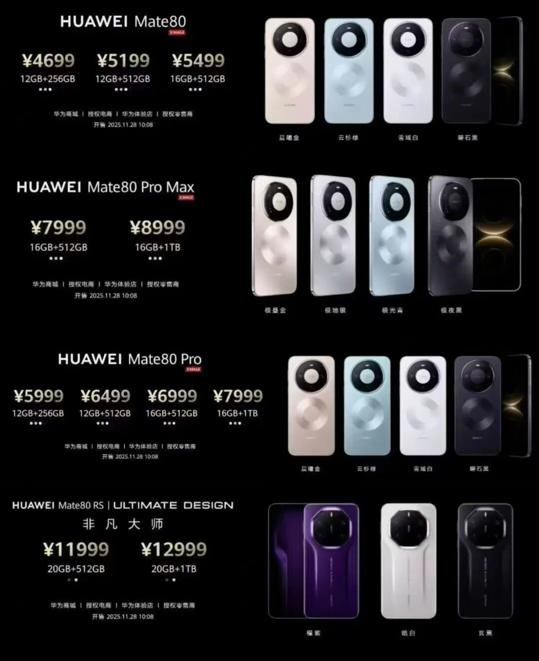 Mate 80 RS 非凡大机还是Mate80 系列独享20GB内存的一款机型,提供512GB/1TB两种存储空间,售价分别为11999/12999元,将于11 月 28日上午10:08开售。