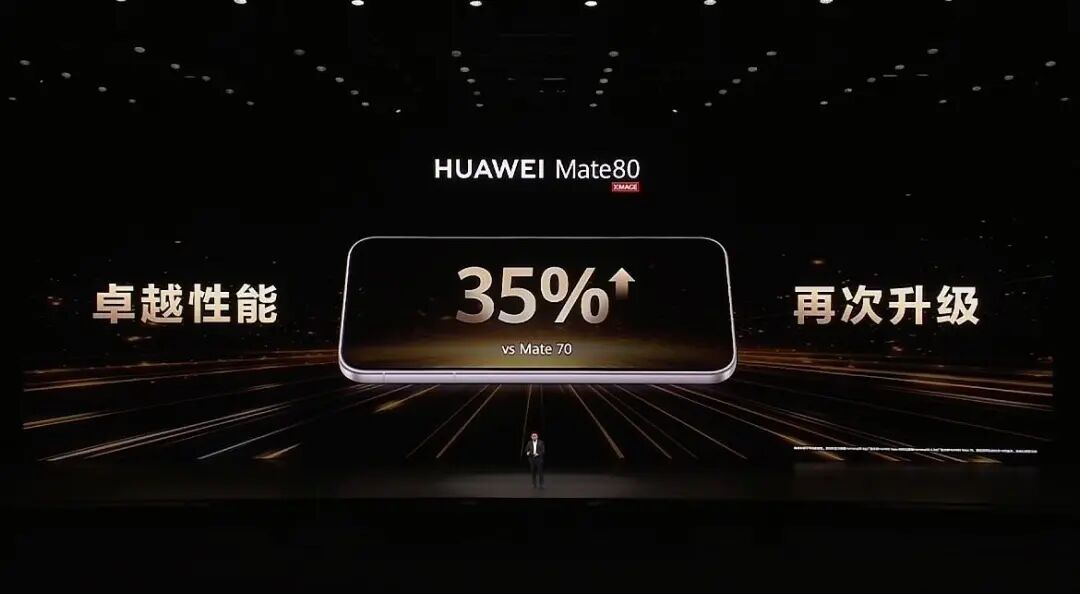 余承东并未在发布会上公布Mate 80系列的处理器,但表示华为Mate 80标准版对比Mate 70性能提升35%;