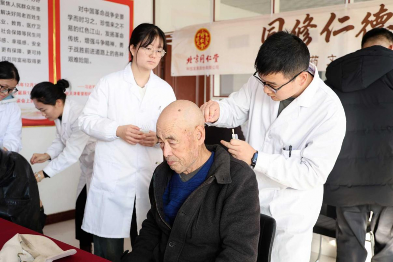11月22日下午,河北易县北豹泉村党群服务中心暖意融融。由北京同仁堂科技发展股份有限公司(以下简称:同仁堂科技)与北京青年报共同发起的“同修仁德·青力青为”中医药文化赋能乡村振兴公益行系列活动,走进这里,为村民带来了一场贴心又暖心的冬季养生义诊与健康知识科普活动。此次活动还得到了北京中医药大学针灸推拿学院的大力支持与理想家北京理想车友会的热情参与。