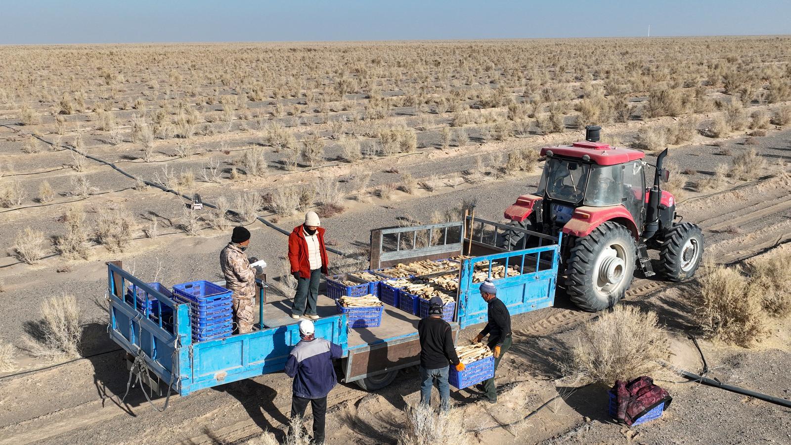 近期,金塔县大漠农林生态产业股份公司万亩梭梭种植基地,成片的梭梭林随风摇曳,沙地中一株株肉苁蓉破土而出,迎来了丰收的黄金季节,工人忙着采挖、分拣、加工中药材肉苁蓉,一派繁忙景象。
