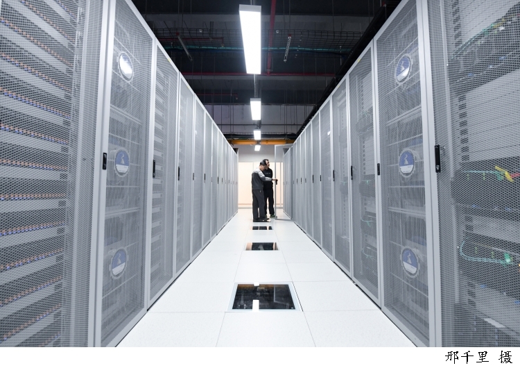 图为上海一家人工智能算力中心机房