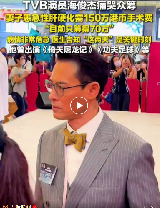 11月8日晚间,TVB演员海俊杰发布视频,称太太莫家慈因患急性肝硬化,恳请大家伸出援手,为太太筹集150万港币的手术费。视频曝光后在网上引发关注。