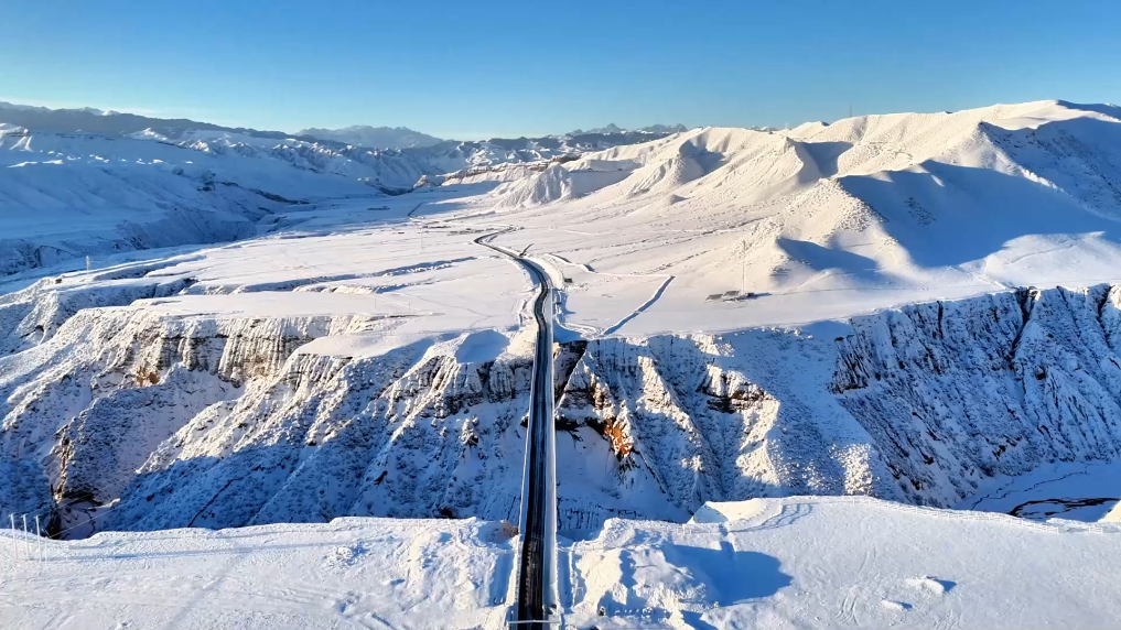 冬日的新疆昌吉回族自治州呼图壁县天山百里丹霞景区,银装素裹间尽显冬日雄浑静谧之美。