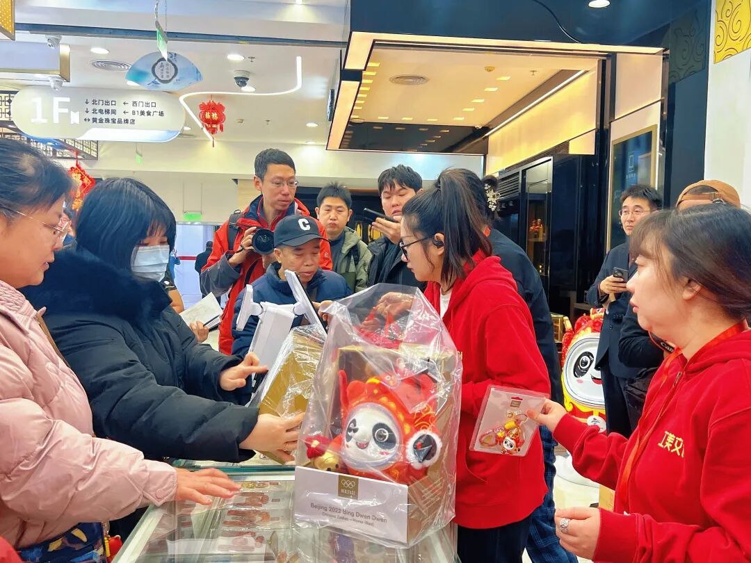 上午9时30分,工美大厦一开门,热情的顾客便有序排队入场购买。资深冰墩墩收藏者张文全成为当天首位顾客,“我特别喜欢今年马墩墩的设计,觉得它特别可爱。”张文全此次计划购买橙色毛绒马墩墩,将其陈列在家中的“冰墩墩墙”上,为自己的收藏版图再添一员。谈及收藏愿景,他充满期待地说,希望未来能打造一座专属的冰墩墩博物馆,将所有款式的冰墩墩完整收藏。