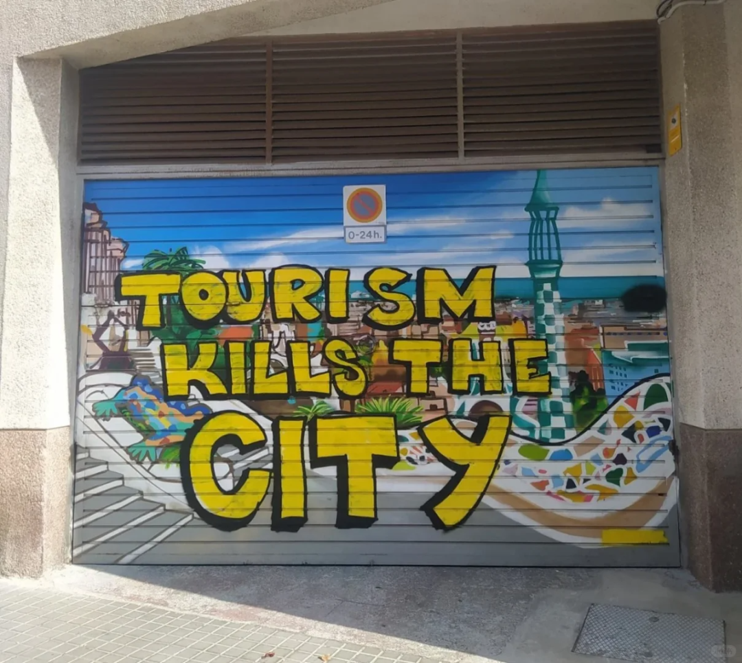 欧洲一些城市的建筑涂鸦上,时常能看到“游客回你们自己家”“这里不欢迎游客”的类似字样。