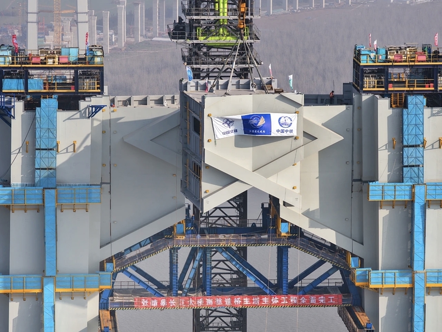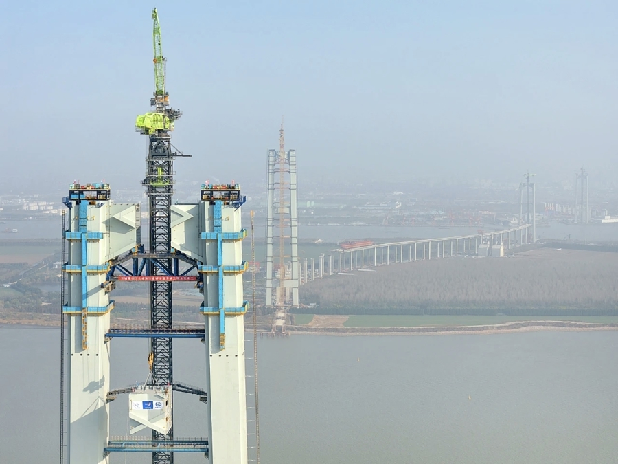 今天,随着南航道桥南主塔上横梁完成“云端合龙”,张靖皋长江大桥南航道桥南主塔封顶,标志着大桥南航道桥南主塔主体工程全面完工。