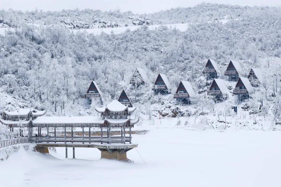这里有湘西北唯一的高山户外滑雪场,滑雪爱好者从高处飞驰而下,划破雪面的 "嗖嗖" 声与远处冰挂坠落的脆响,谱就一曲冬日交响乐。