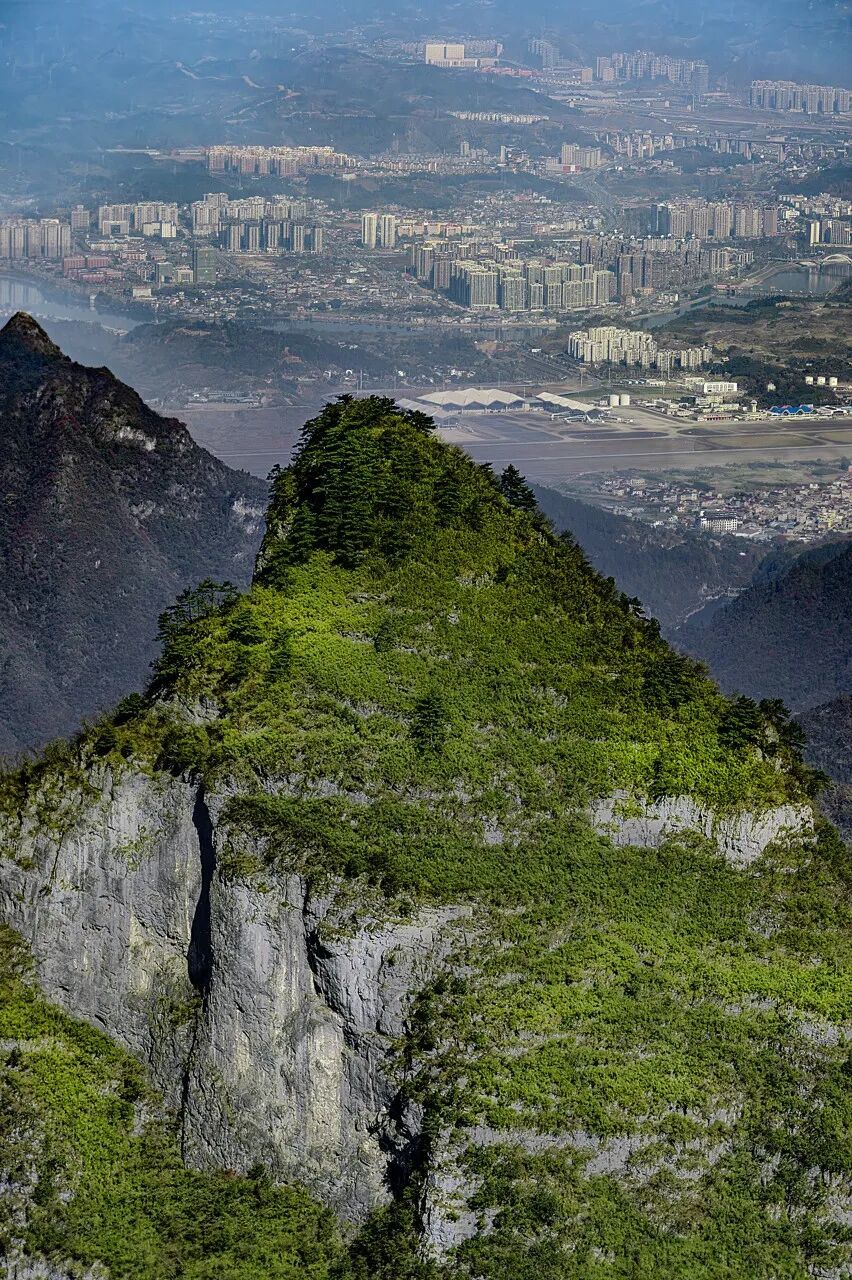 整座山绝壁高悬、峡谷深切、绿树密布。
