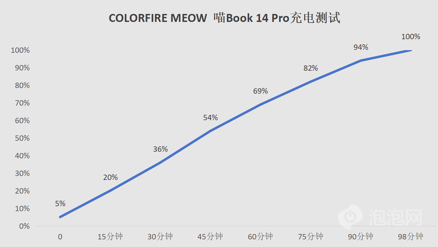 充电方面,喵Book14 Pro标配了100W电源适配器,还采用了三脚插头设计,有效防止不接地导致的被电。实测喵Book14 Pro充电50%仅需45分钟左右,98分钟即可完全充满,速度飞快,外出使用之后也能快速回血。同时100W充电器还能激活多个品牌手机快充,出门带一个适配器就够了。