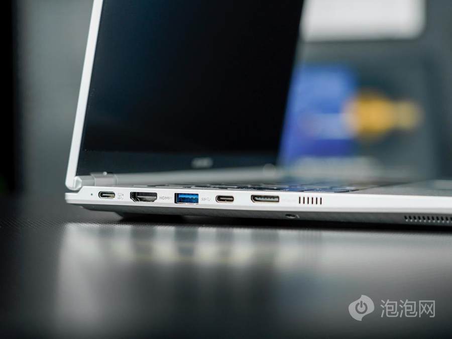 机身右侧配备了一个安全锁孔、一个USB-A 3.2 Gen1接口、一个USB 2.0接口、一个3.5mm音频复合接口以及一个MicroSD读卡器,方便摄影师等用户快速导入资料。机身右侧还设置了一个摄像头物理电控开关,只需轻轻一拨即可从硬件层面切断摄像头电源,为用户隐私安全提供了一道坚实的物理屏障。