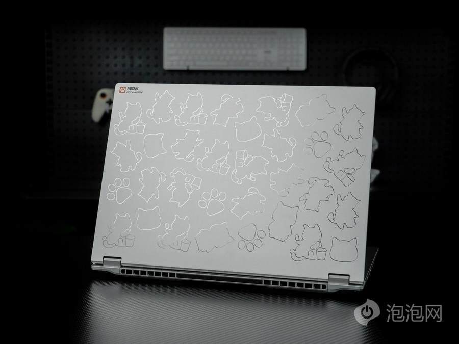 在体验过COLORFIRE MEOW喵Book14 Pro之后,最令人倾心的便是它将“萌宠美学”贯彻到底的高颜值。A面璀璨的钻石切面雕花与灵动猫影巧妙融合,搭配1.49kg的轻量化全金属机身,成功将冰冷科技产品转变为彰显个性的时尚单品,在众多同质化笔记本中脱颖而出。
