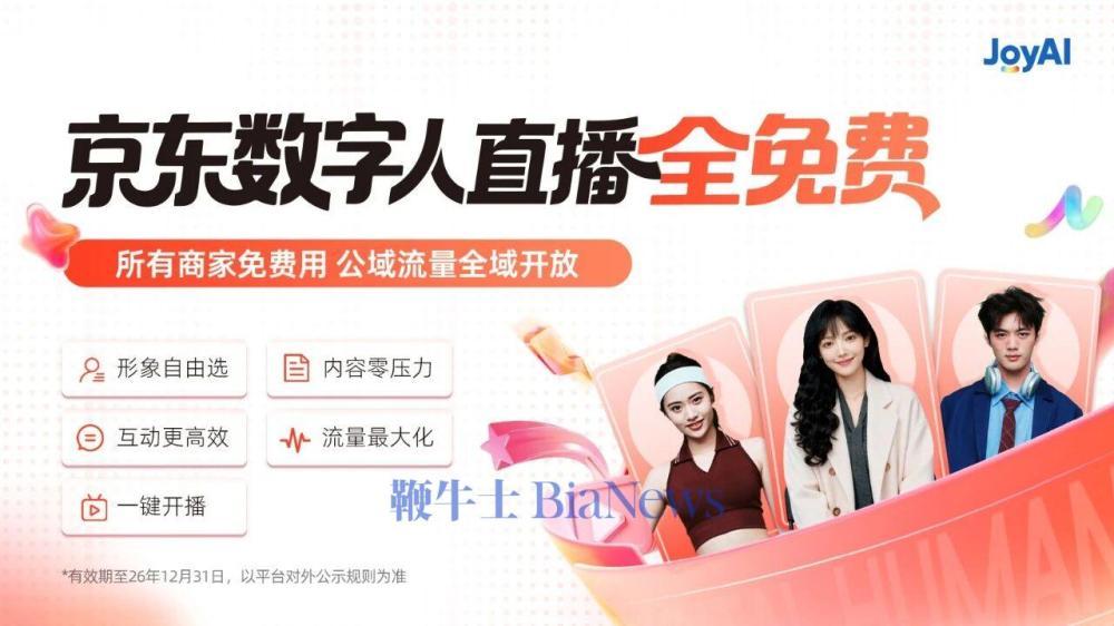 12月2日,据京东黑板报消息,京东正式宣布,京东数字人直播免费向所有商家开放。