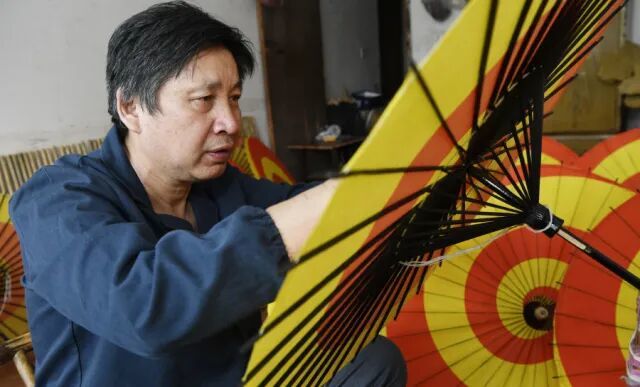 闻士善大师的一生都坚守着“甘守一身清贫,只为保护文脉”的匠人风骨。图为其在制作油纸伞。