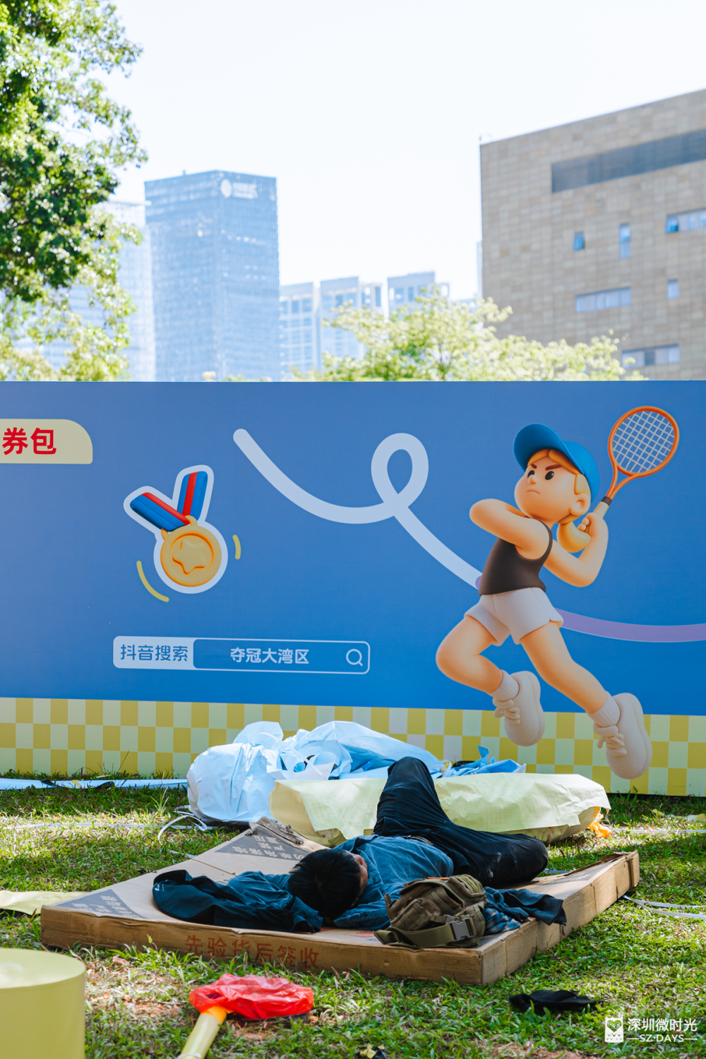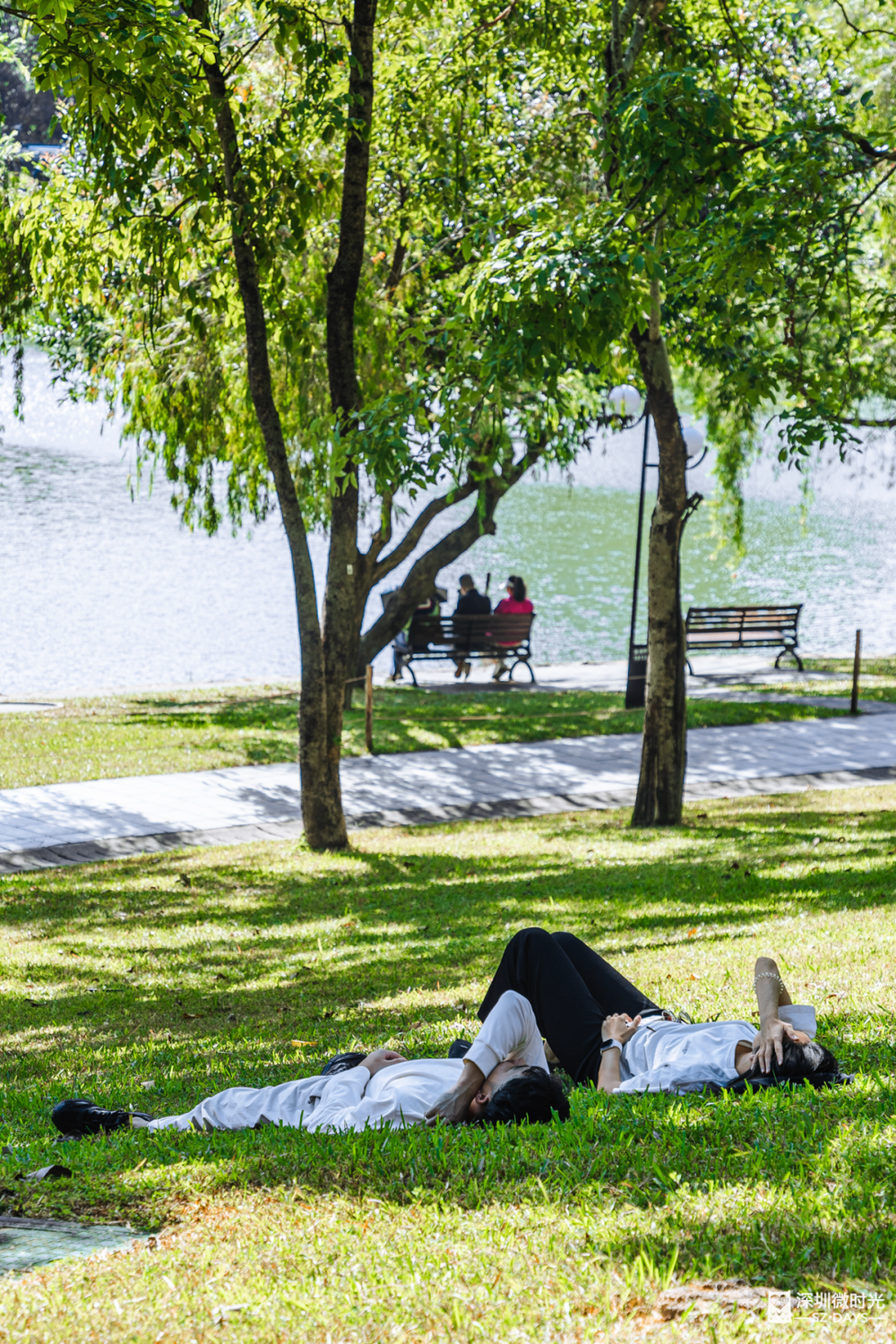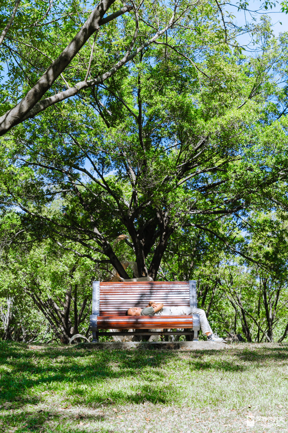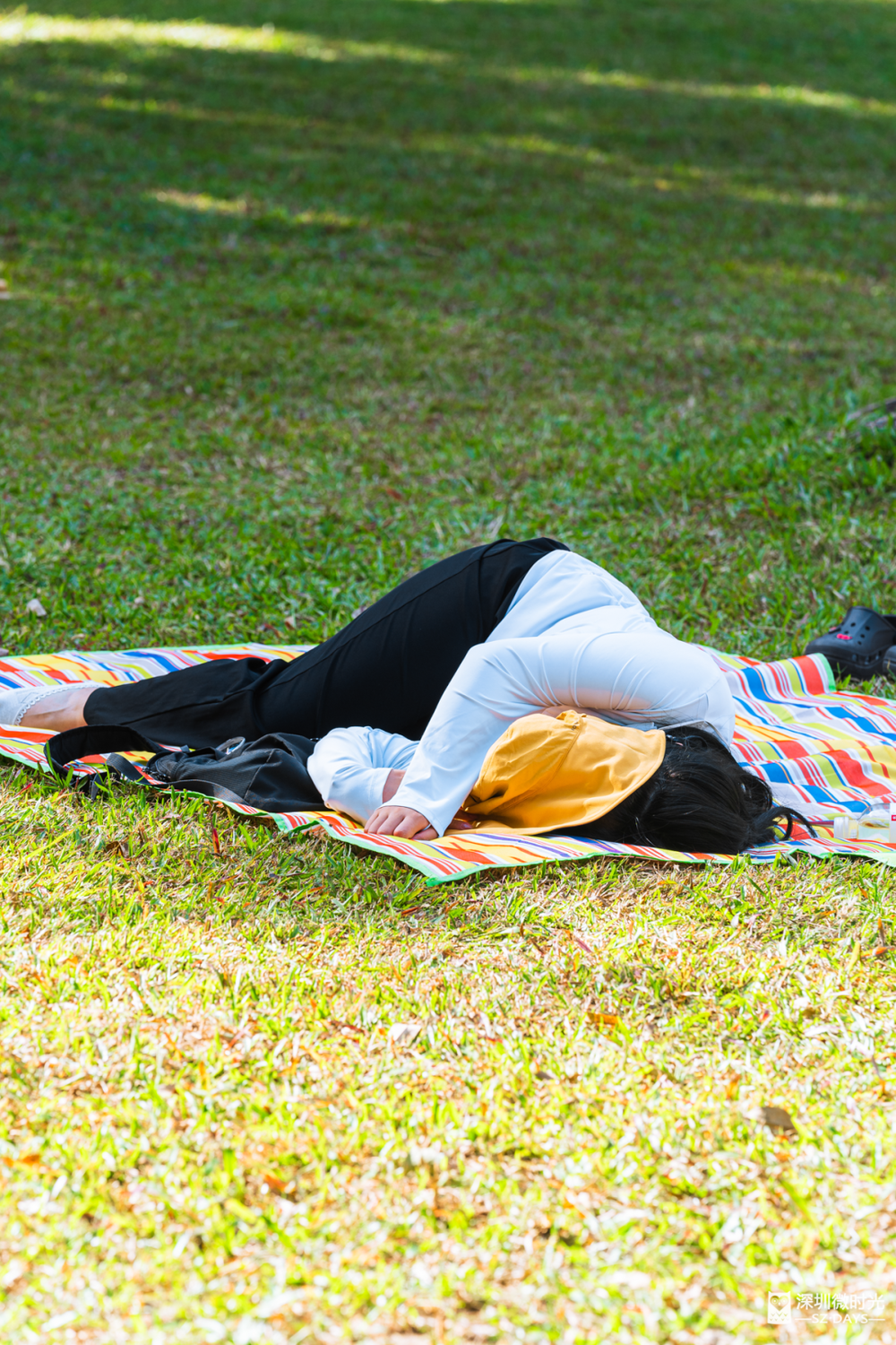 树荫挡住日光,风吹叶响是自然的白噪音。深圳公园的草地上,总能遇见最放松的睡姿。